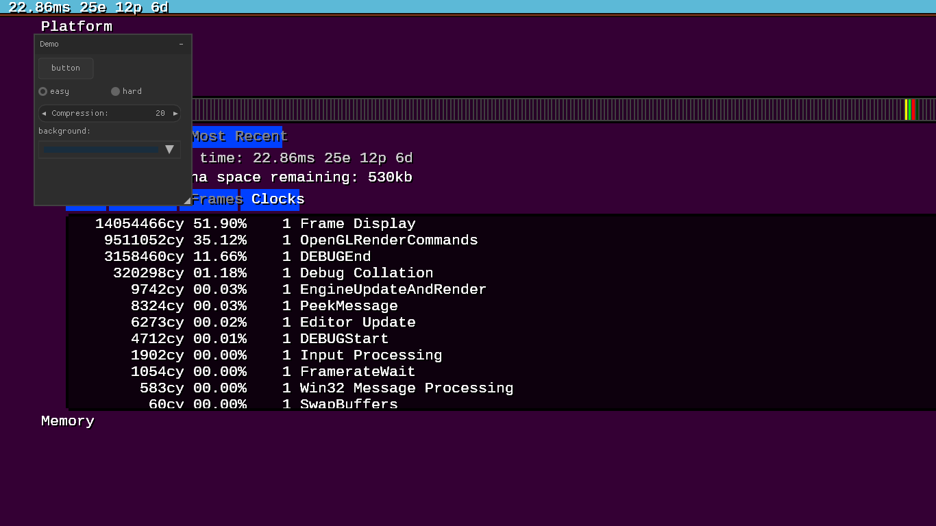 Since I “finished” working on the Clipper library, I decided it was time to refactor my game engine. The last time I touched it was almost six months ago, and when I opened the source code, my first instinct was to throw everything in the garbage and start over. One of the biggest issues I faced was the debug system. Originally, I had implemented a system inspired by Handmade Hero, and while I love how it was designed, it had dependencies on both rendering and asset management—something I wanted to eliminate. ...